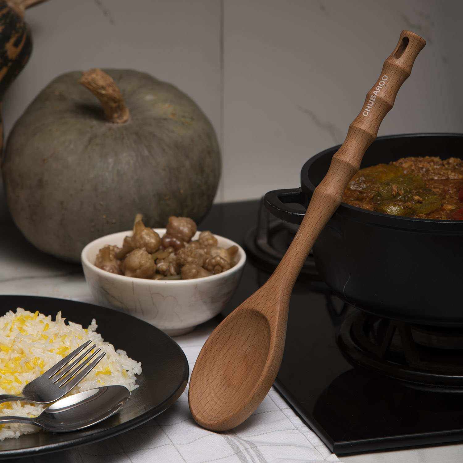 قاشق چوبی معمولی، ابزاری ساده و کاربردی برای هم‌زدن و سرو انواع غذاهاست. ساخته‌شده از چوب طبیعی و مقاوم، سبک و بادوام بوده و به دلیل سطح نرم خود، هیچ آسیبی به ظروف نچسب وارد نمی‌کند. انتخابی سالم، زیبا و ضروری برای هر آشپزخانه.