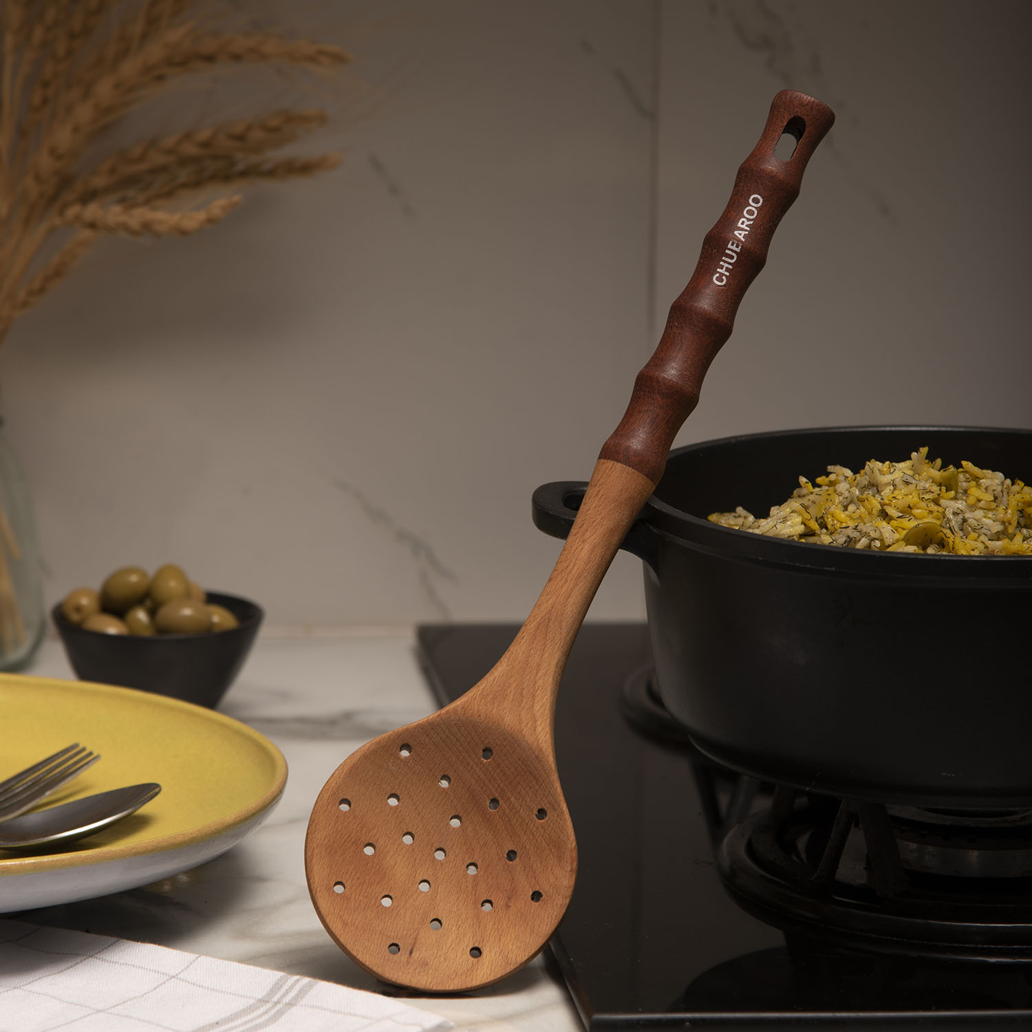 کفگیر چوبی با طراحی ساده و ارگونومیک، ابزاری ایده‌آل برای هم‌زدن و سرو غذاهای مختلف است. ساخته‌شده از چوب طبیعی و مقاوم، سبک و بادوام بوده و هیچ آسیبی به سطح ظروف نچسب وارد نمی‌کند. انتخابی سالم، کاربردی و زیبا برای هر آشپزخانه.